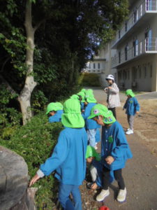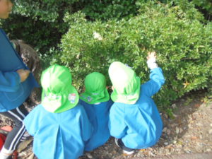 鳥の声・木の実・葉っぱ・芋虫(クリップ)探し
