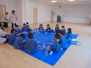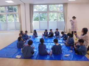みんなで丸くなり、おにぎりを食べました 食後におやつも食べました♪