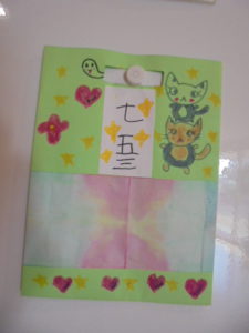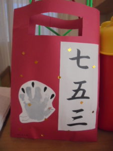 こども園では手作りの袋にお菓子を入れて持ち帰ります♪