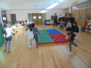 運動遊びがあり、ひまわり組とゆり組が参加しました☆彡