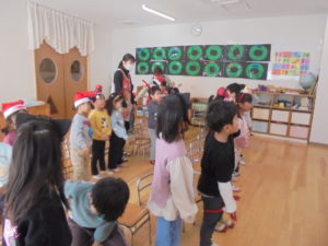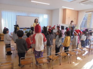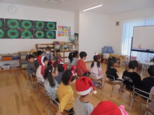 異文化交流がありました 異文化交流があり、ひまわり・ゆり組が参加しました☆彡 クリスマスの英語を楽しみました☆彡 リズム遊びを楽しんだり、ビンゴゲームを楽しんだりしました☆彡 楽しい時間を過ごしました(⋈◍>◡<◍)。✧♡