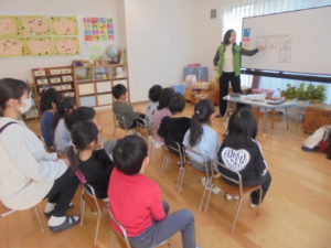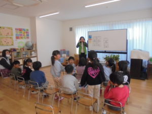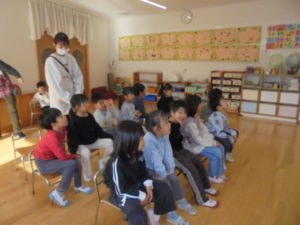 異文化交流がありました 異文化交流があり、ひまわり組が参加しました☆彡 自分の体調を英語で答えたり、バスのリズム遊びを楽しんだりしました☆彡 集中してお話を聞くことができていました☆彡 小学校に行っても英語を楽しんでね(^0^)/