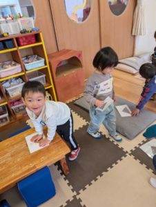 もも組さんがうさぎさんのワンピースの模様を思い思いに作りました☆彡