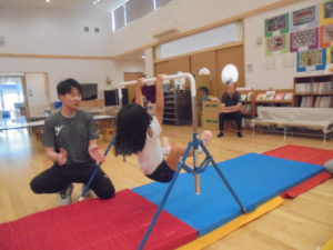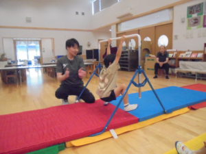 鉄棒にも挑戦しました(⋈◍>◡<◍)。✧♡