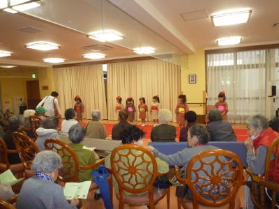 内容として、クリスマスソングと冬ソングをメドレーにし利用者様も手拍子で楽しめました!!