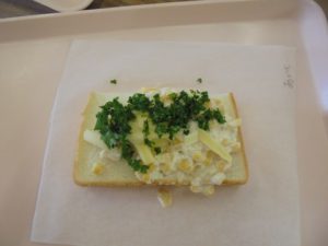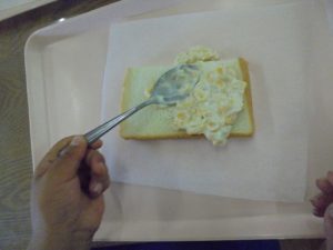 そして玉ねぎ入りのコーンマヨをパンに塗り