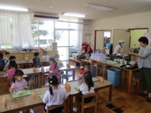 盆踊りを踊ったり、ゲームを楽しんだり・かき氷やポップコーンを食べたりしました