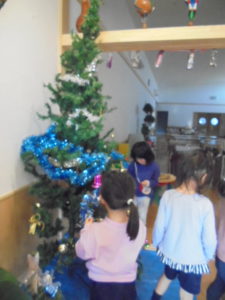 子どもたちがクリスマスツリーの飾りつけをしました☆彡